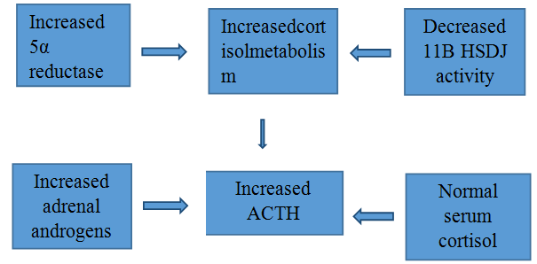 An alteration in cortisol metabolism resulting in enhanced adrenal androgen production [14].