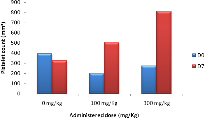 Fig. 5: Effect of tridaxprocumbens on platelet count