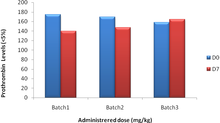 Fig. 7: Effect of tridaxprocumbens on the prothrombin rate