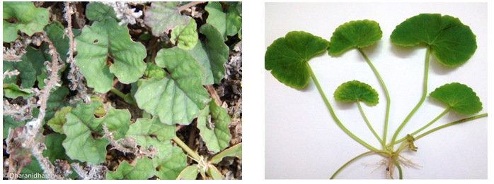 Merremia emarginata Burm. F (Convolvulaceae) and Centella asiatica (L.) (Apiaceae) are two important drugs mentioned in Siddha system of medicine. M. emarginata and C. asiatica are perennial, much-branched creepers. M. emarginata is also known as Ipomoea renifomis and it is widely distributed all over India, especially in damp places and railway tracks. C. asiatica is locally known as Vallarai. It is found throughout India growing in moist places up to an altitude of . About 20 species grow in most parts of the tropic or wet pantropical areas such as rice paddies, and also in rocky, higher elevations [1]. These plants have different vernacular names [2-3] (table 1).