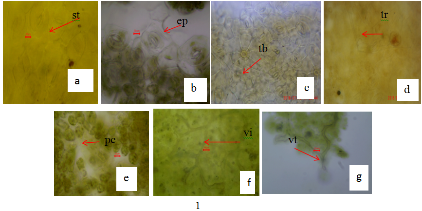 The powder microscopy of the powered leaves of both drugs was studied using standard procedure [9] by capturing the images of different fragments of tissues and diagnostic characteristic features were recorded.