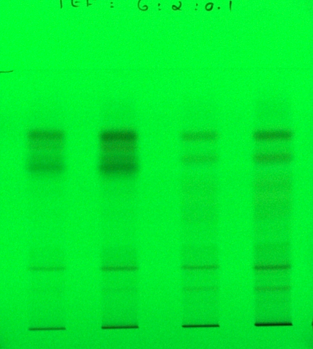 HPTLC photo documentation profile of the chloroform extracts of both plant materials are given in fig. 6
