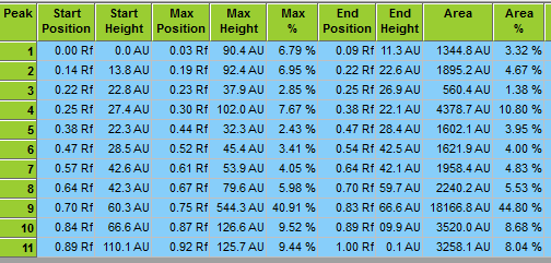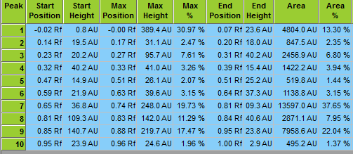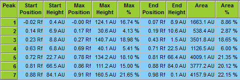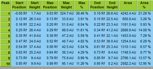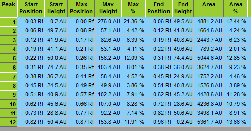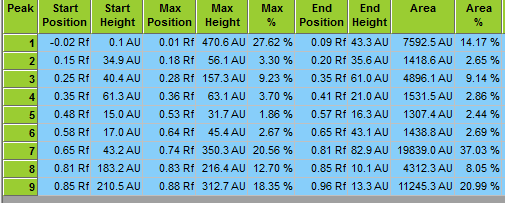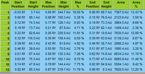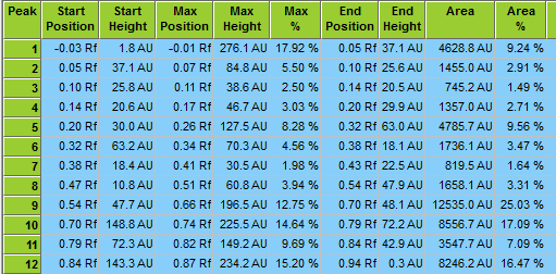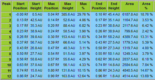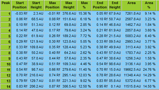 Fig. 8(1): Fingerprint profile and Rf table of chloroform extract of M. emarginata (leaf) at 366 nm