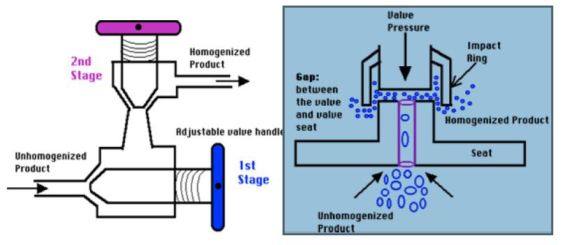 The preparation of nanoemulsions requires high-pressure homogenization. This technique makes use of high-pressure homogenizer/piston homogenizer to produce nanoemulsions of extremely low particle size (up to 1 nm). The dispersion of two liquids (oily phase and aqueous phase) is achieved by forcing their mixture through a small inlet orifice at very high pressure (500 to 5000 psi), which subjects the product to intense turbulence and hydraulic shear resulting in extremely fine particles of emulsion. The particles which are formed exhibit a liquid, lipophilic core separated from the surrounding aqueous phase by a monomolecular layer of phospholipids. This technique has great efficiency, the only disadvantage being high energy consumption and an increase in temperature of the emulsion during processing.