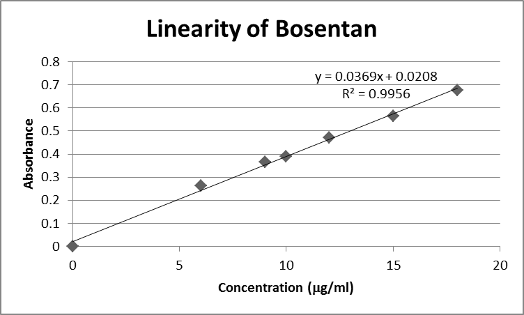 Conclusion: The analytical technique presented here demonstrates shorter and easier sample preparation method, decreased analysis time and reduces the need for complicated or expensive equipment. The sample preparation method used in this study can also be further extended to higherend analytical techniques and other biological samples for quantification of bosentan.