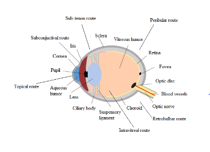 Fig. 1: Structure and schematic representation of various routes of ocular drug delivery