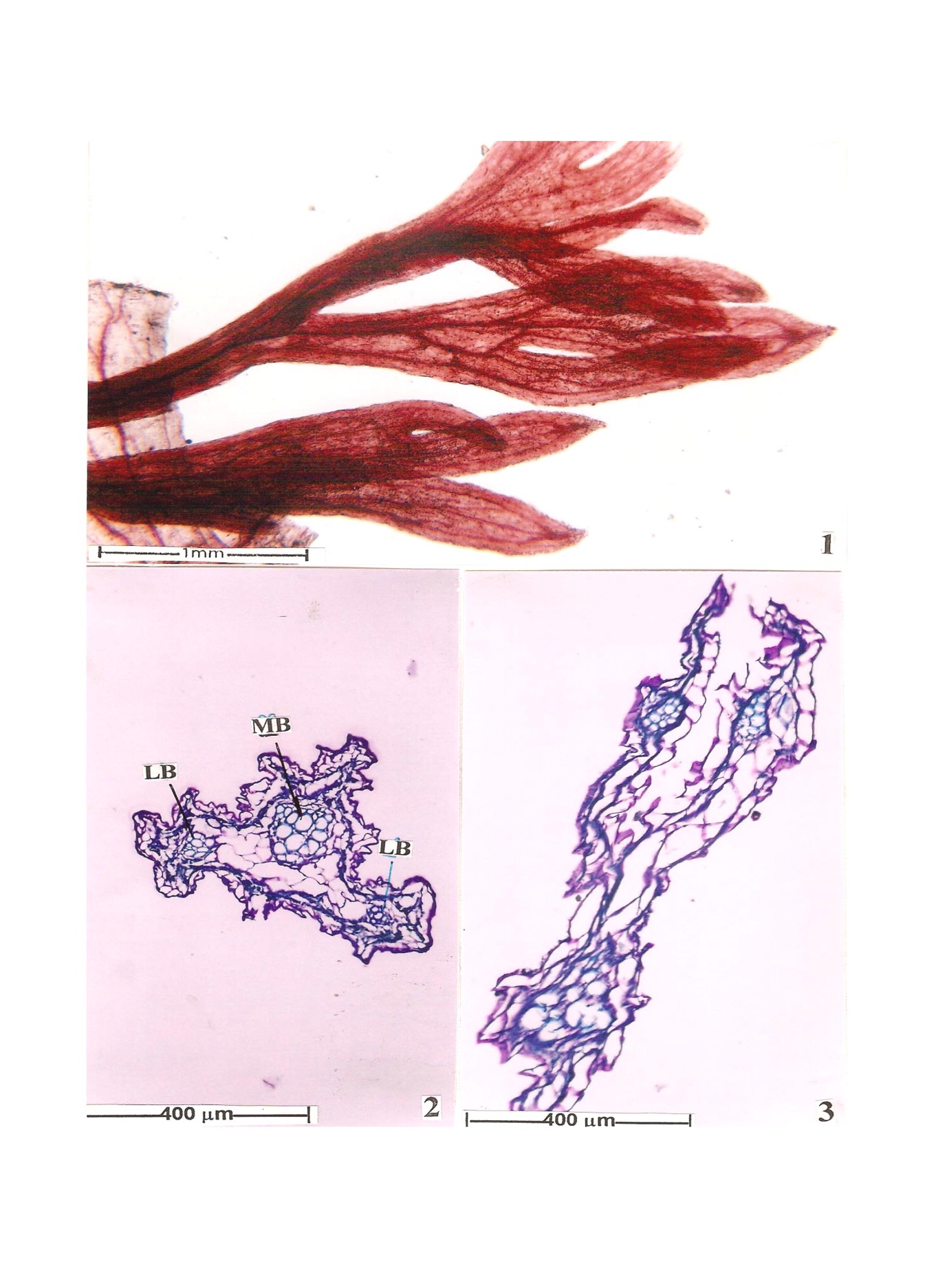 Fig. 4: Venation pattern and microscopical characters of leaf, 1. Venation pattern, 2. T. S. of petiole region, 3. T. S. of leaf with lamina