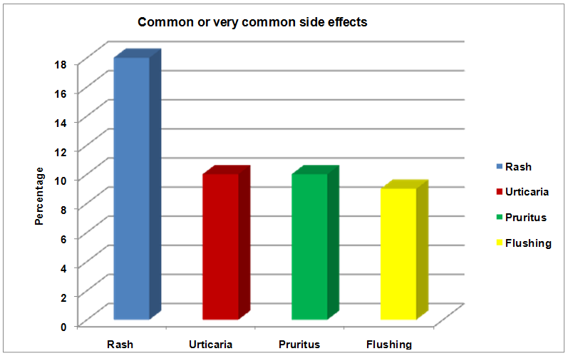Rash, pruritus and urticaria were among the most common side-effects experienced by patients as a result of being prescribed the aforementioned medications (fig. 1).