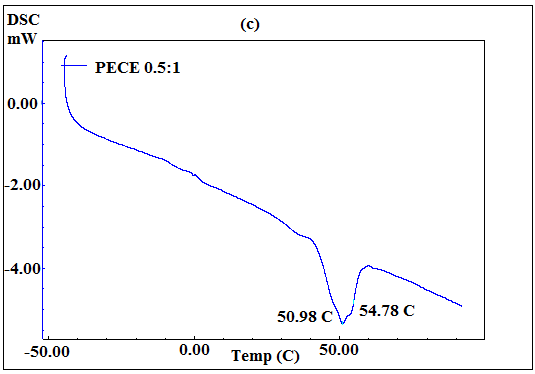 The characterization of thermal analysis of the PECE triblock copolymer is carried out with the Differential Scanning calorimetry (DSC). Analyses thermal aims to do find out the melting point of triblock copolymer. The thermal analysis curve (DSC) is shown in fig. 3.