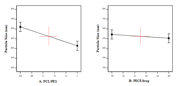 Fig. 4: Graphic influence ratio of PCL/PEG and PECE/drug on the particle size