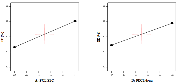 Fig. 6: Graphic influence ratio of PCL/PEG and PECE/drug on the EE