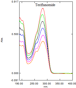 No UV spectrophotometric method has been reported so far, for the estimation of TEF in marketed formulation. Therefore, the current work is directed towards the development of a novel UV spectrophotometric method for the estimation of TEF in marketed formulation and its validation according to ICH guidelines [13, 14].