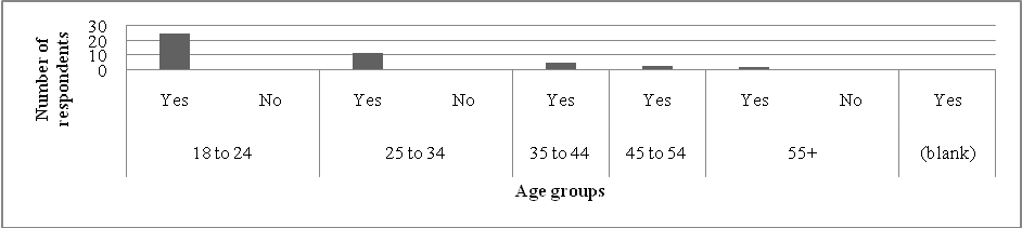 Both males and females answered selected yes (72% and 88% respectively). When analysing the results by age, the majority of all age groups selected yes as the correct answer (77%, 92%, 60% and 100%for 18-24, 25-34, 35-44 and all others). A majority (84%) of BW participants selected Yes, all BA (100%), 72% of BC and 60% of ME.