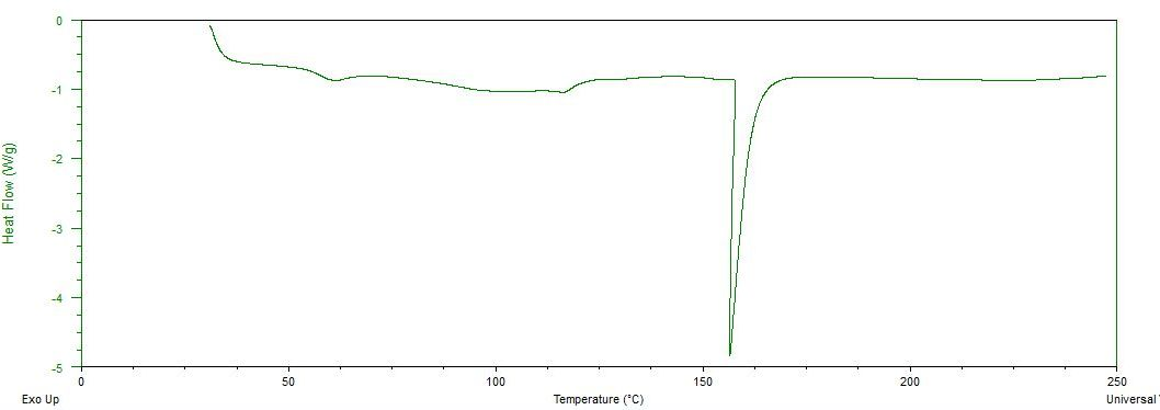 DSC thermograms of pure efavirenz and optimized formulation were recorded on DSC. Samples (15 mg weighed to a precision of 0.1 mg) were placed in aluminum pans and the lids were crimped using a TA crimper. The thermal behavior of the samples was investigated at a scanning rate of 10°/min, covering a temperature range of 25-200° against an empty aluminum pan as reference. The instrument was calibrated with an indium standard. The DSC thermograms.