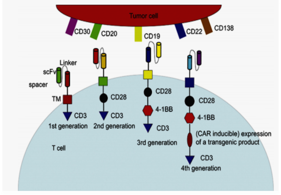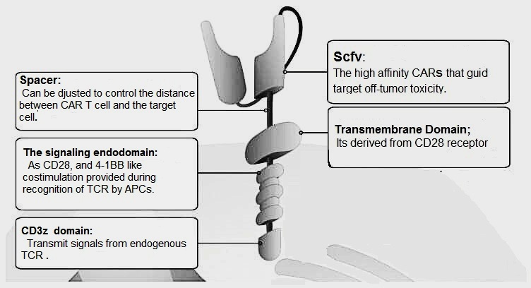 As a promising therapeutic regimen, CAR-T cell therapy has stood the test of time for many years to improve the effectiveness and safety of this approach. CAR design has developed over the past few decades as shown in (fig. 2), and now a days four different generations are available varies in the intracellular sections.