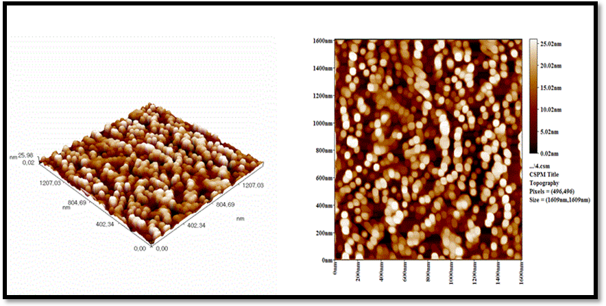 Titanium nanoparticles (NpTiO2) were studied using atomic force microscopy (AFM) that show in fig. (3) and (4). Atomic Force Microscopy (AFM) are emerging as fundamental tools to extremely investigate the morphology and structural properties at micro and sub-micrometric scale [20].