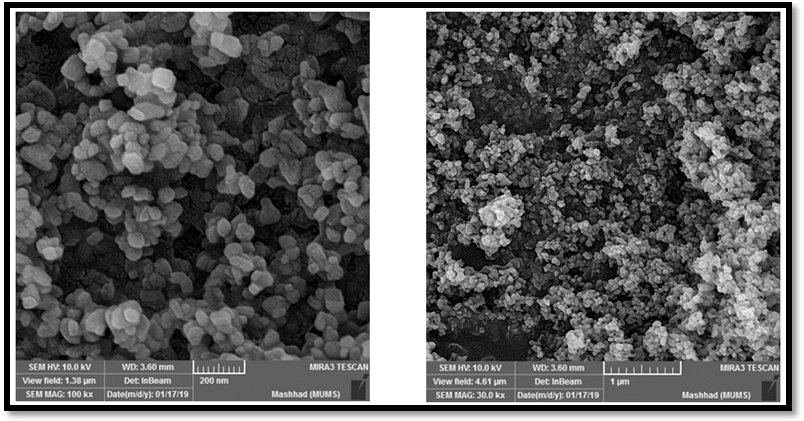Titanium nanoparticles were analysis by using Emission scanning Electron Microscopy (FE-SEM) in different resolutions as in fig. 5.