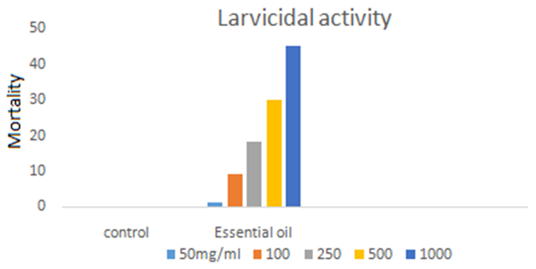 Results: The aqueous extract shown dose-dependent activity with the maximum larvicidal potential was seen with leaf of essential oil (250 mg/ml).