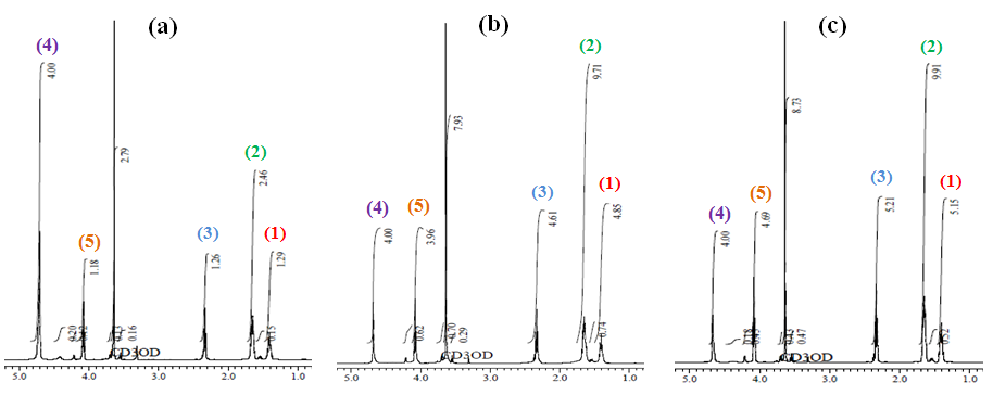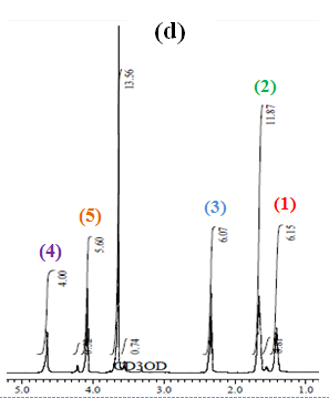 The structure of copolymers was characterized by Proton Nuclear Magnetic Resonance (1H-NMR) spectroscopy 500 MHz Jeol Resonance JNM-ECZ500R (Peabody, USA) in CD3OD (metanol-d4). Less than 1 µg of each sample was placed into micro tube and analyzed in 500 MHz. [12, 16]