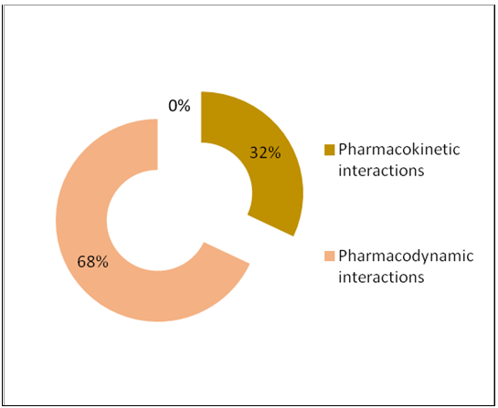 In our study, we found that most of the potential drug interactions were pharmacodynamic (68%) in nature followed by pharmacokinetic interactions (32%). This was in contrast to a study conducted by Venkateswaramurthy et al. where the pharmacokinetic interactions (54%) were higher compared to pharmacodynamic interactions (46%) [19].