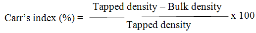 Carr’s index or compressibility index is determined by the following formula. Table 2 shows the flow property of granules.