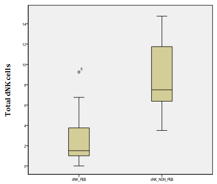 Fig. 1: Boxplot showing mean number of dNK cells in placenta with severe preeclampsia and normal pregnancy