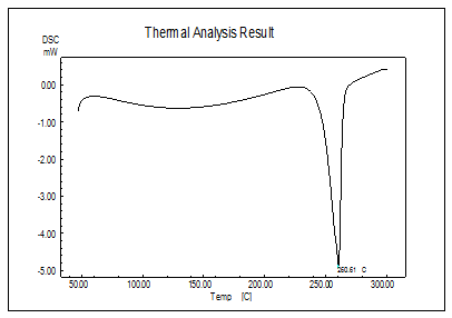 Ramosetron Hydrochloride showed sharp endothermic peak at 260.61 °C that corresponds to its melting range as shown in fig. 2.