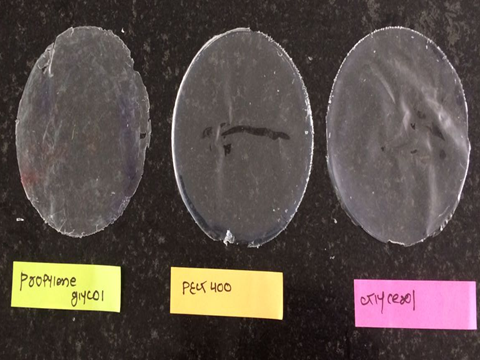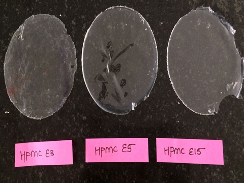 Fig. 3: Films prepared using different film former and plasticizer
