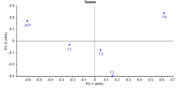 Fig. 4: PCA map of ramosetron hydrochloride in the presence of a different concentration of aspartame