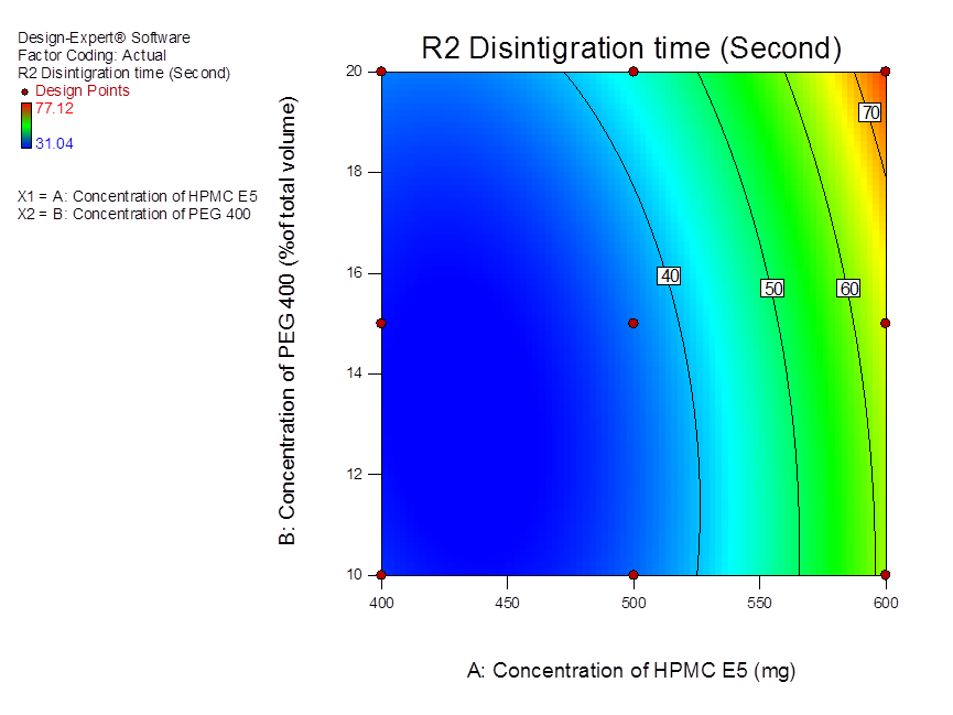 Fig. 6: Contour plot of disintegration time