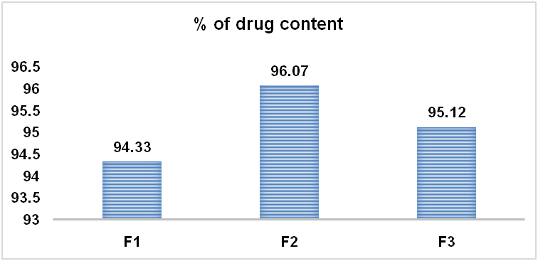 Weighed 15 gm of each gel formulation were transferred in 100 ml of the volumetric flask containing 10 ml of alcohol and stirred for 35 min. 1 ml of the above solution diluted to 10 ml with alcohol and again, 1 ml of the solution was further diluted to 10 ml with alcohol. The absorbance of the solution was measured spectrophotometrically at 269 nm.