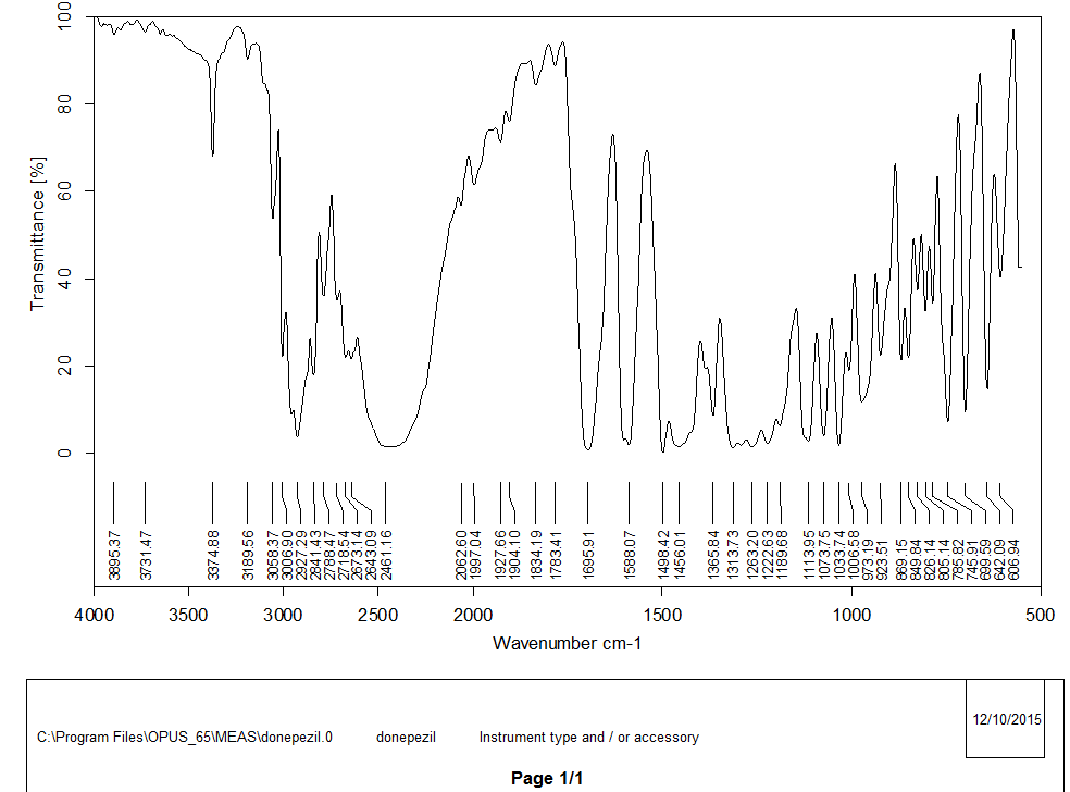 Fig. 1: FTIR spectrum of donepezil hydrochloride
