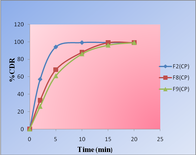 The formulations F2, F3, F1 and F5 got good dissolution efficiency values compared to F8, F9, F6, F4, and F7. This indicated increased dissolution rate in F2, F3, F1 and F5 compared to F8, F9, F6, F4, F7 formulations, as shown in table 5.