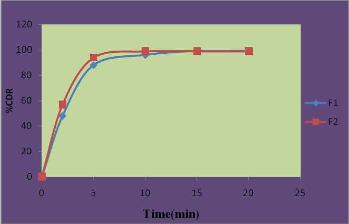 Fig. 6: Dissolution profile for F1 and F2 (CCS=CP 12 mg)