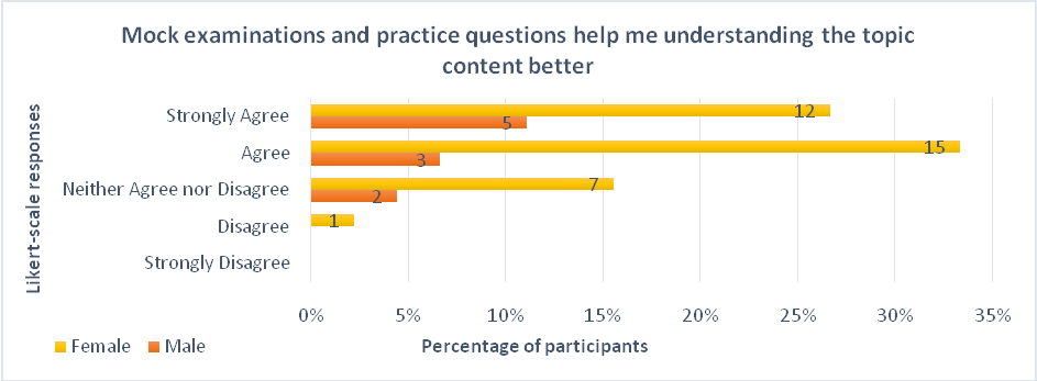 Fig. 1: Responses by gender on the effect of understanding the content better when mock questions are used