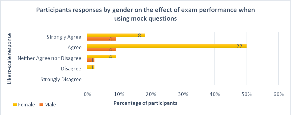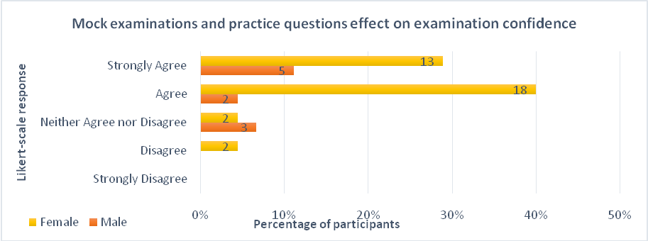 Fig. 3: Responses by gender on the effect on examination confidence when using mock questions