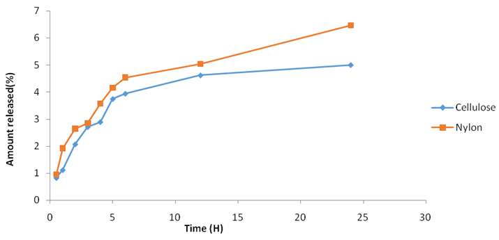 Conclusion: In the study conducted here, it was observed that Nylon membrane showed better discriminating power to compare among the formulation. This indicates that it has gotten prime importance to watch the effect of the membrane upon the release pattern of the various formulations. In order to improve the formulation, we can use in vitro diffusion cell experiments of transdermal drug delivery.