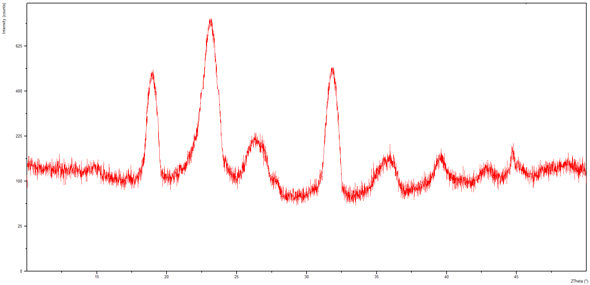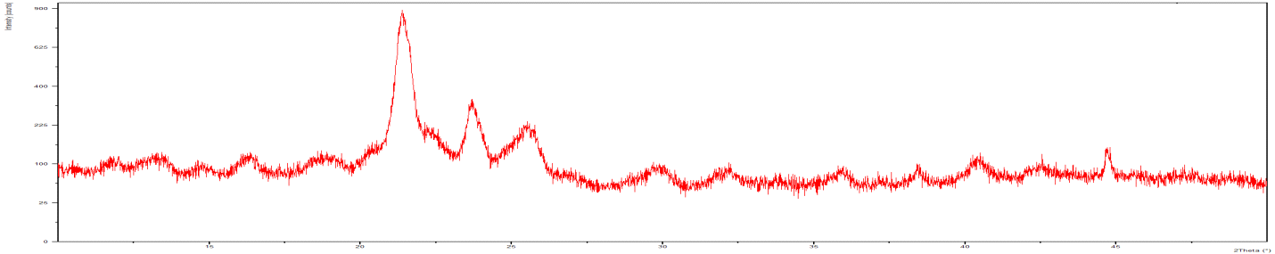 X-ray diffraction study was performed to confirm the physi-cochemical characteristics of metformin hcl in the matrix of the transdermal ointment where pure ointment showed prominent peaks of diffraction with angle of 2θ value, of 13.51°, 18.13°, 20.10° et cetra. As in fig. 5 indicating the presence of crystalline ointment. Diffractograms regarding physical mixture of ointment and excipients also showed some peaks of decreased intensity, while in the diffractograms of the ointment, fused peaks were seen instead of, sharp and intense peaks. The drug was molecularly dispersed as shown by the lack of festered peaks and altered to amorphous form [17].