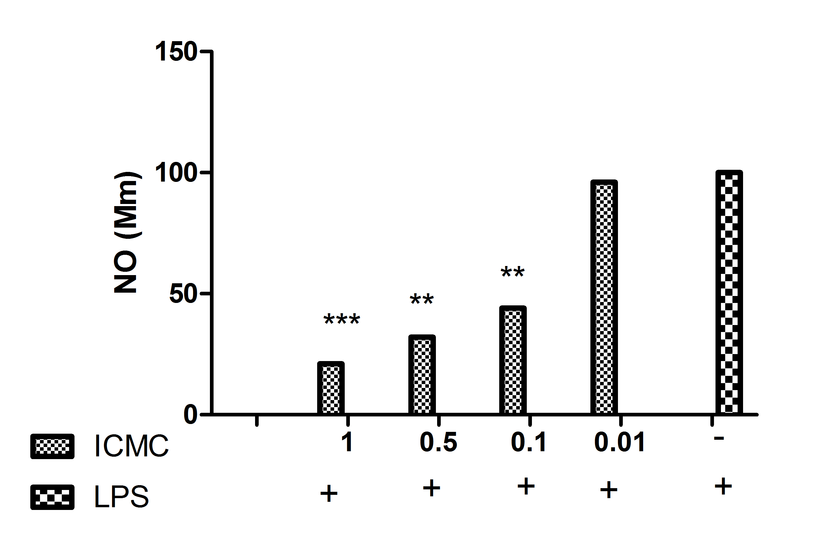 Fig. 3: LPS Induced Inhibition of NO production by the Moringa concanensis isolated compound, data are mean±SEM (n = 3) ***p<0.001