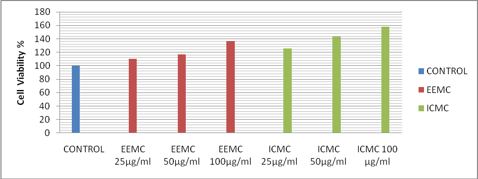 | Concentration in µg/ml | Control | MTT+EEMC | MTT+ICMC |