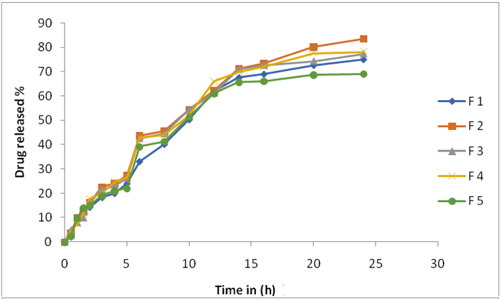 Fig. 3: Release of celecoxib cream 1% (W/V) via dialysis cellulose membrane