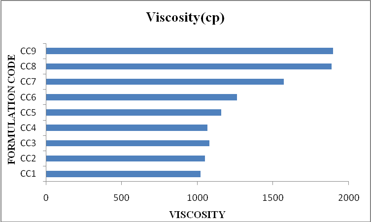 Viscosity of formulated antibacterial cream was determined by brook field viscometer at 50 rpm. The viscosity of anti bacterial cream was found in range of 1000 to 3000 cp which indicates that cream was easily spreadable by small amount of shear.