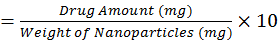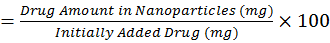 Weight amount of nanoparticles were dissolved in acetone and scanned in UV-vis instruments to get the absorbance and the obtained absorbance value was put in the standard curve to get the loading and encapsulation by following equation [16].
