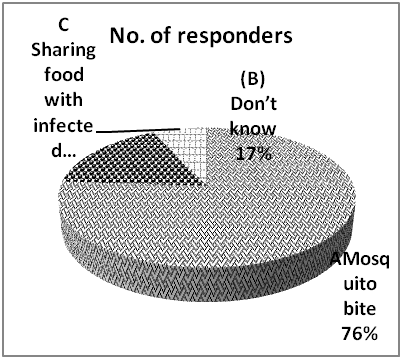 | 2 | Do you know about transmission of Dengue? | a) Mosquito bite b) Don’t know c) Sharing food with infected people |