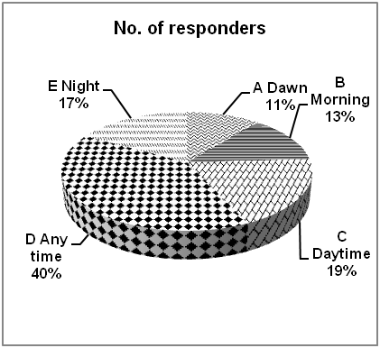 | 5 | Do you know about Biting time of mosquitoes? | a) Dawn b) Morning c) Daytime d) Any time e) Night |