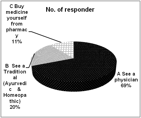 | 6 | Attitude of responders. When he understood that he/she is ill.? | a) See a Physician b) See a Traditional (Ayurvedic and Homeopathic) |