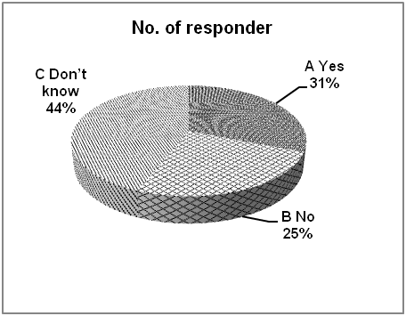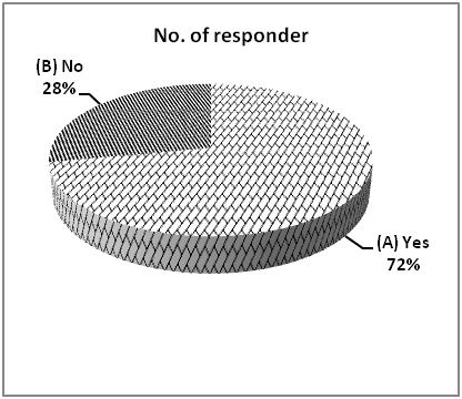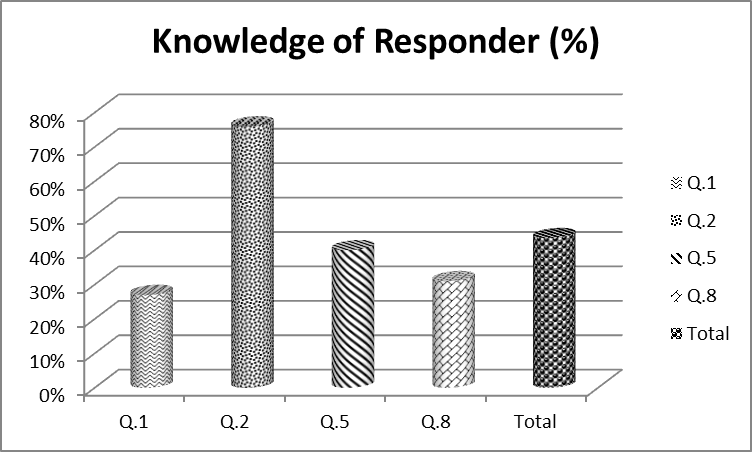 As compare to previous studies; it was observed regarding response for breeding site of mosquito 66% peoples says Box, Cans, Pots, Water containers, 24% peoples says Ponds, River and 10% peoples says Forest. and the mosquitoes most breed from Boxes, cans, pots, and water containers. It means 66% surveyed population were aware risk of stored water can proliferate mosquito and lead to spread of Dengue. It was observed for sources of information of dengue: 22% peoples were become aware by health personnel, 39% was aware from Radio/TV, 25% peoples were aware from newspaper/magazine and 14% peoples were aware from relatives and friends. All three sources played an important role in creating awareness among society. It was found that 25% peoples say government are responsible for mosquitoes control, 25% peoples says self’s are responsible for that and 50% peoples says both are the responsible for mosquitoes control. These peoples should be made aware that its mutual responsibility. It was found that 72% peoples stored water at home and 28% of peoples not stored water at home but from these 67% peoples was frequently changed this stored water and it was the good attitude means 67% peoples were aware regarding the spreading of infection due to accumulated water. Regarding symptoms of dengue fever 49% people says fever, 16% people says skin rash, 8% people says bleeding from nose and 27 % people says all of the above. Majority of surveyed population were aware about the distinguishing symptom of dengue that high fever. The majority was given to the fever, but the correct answer was all of the above. About transmission of dengue 76% peoples says mosquitoes are responsible, 17% peoples don’t knew about this and 7% peoples says, by sharing the food with infected people dengue are transmitted. There were 11% peoples says biting time of mosquito is dawn,13% says morning,19% says daytime, 40% says any time and 17% peoples says at night mosquitoes bites. If the person was affected by dengue in past then possibility may get it again because dengue is the mosquito-borne disease and mosquitoes may bite to the person any time. Regarding this 31% peoples says person may get it again, 25% peoples says it does not get it again and 44% peoples says don’t know about this. If person understood he/she infected by dengue, then 69% peoples see a physician, 20% of peoples see a traditional (Ayurvedic and Homeopathic) and 11% buy medicine on their own from pharmacy. Significant surveyed population had the correct knowledge that they should see physician if they get symptoms of Dengue. In first stage of dengue 33% peoples treat our self’s at home, 53% peoples don’t knew what to do and 14% peoples take traditional medicines [15-18]. For the prevention of mosquitoes Bite 30% peoples used mosquito coil, 23% peoples used mosquito Net, 28% peoples spray insecticide and 19% peoples used repellent. It is found out that caution was taken by population. Index of awareness, knowledge and attitude was found to be 59%, 44% and 52%, respectively. Results are represented in the fig. 1 to 18.