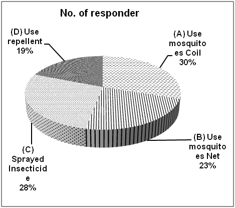 | 11 | What measures do you take to prevent Mosquitoes Bite.? | a) Use mosquitoes Coil b) Use mosquitoes net c) Sprayed Insecticide d) Use repellent. (Anyone or more) |