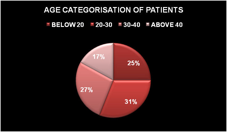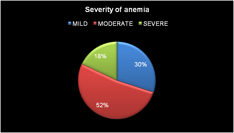 Fig. 1: Shows degree of anemia in patients.18% shows severe anaemia, 52% moderate anemia and 30% showing mild anemia