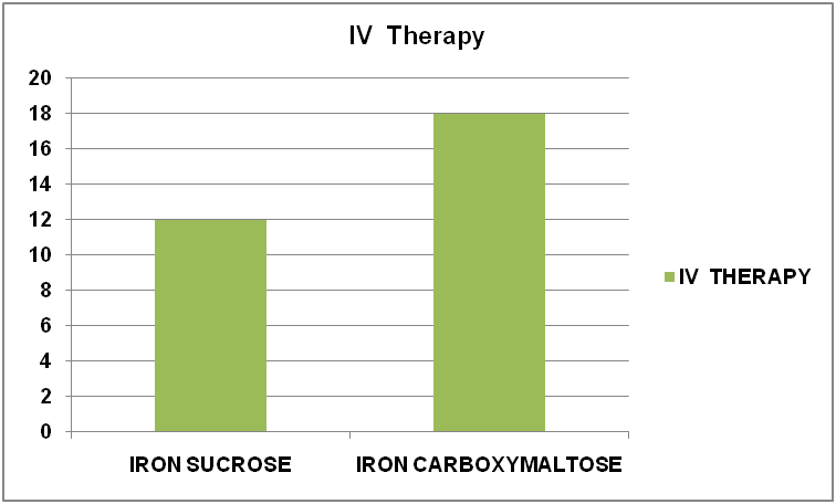 Fig. 3: Administering iron sucrose to 12 patients and iron carboxy maltose to 18 patients